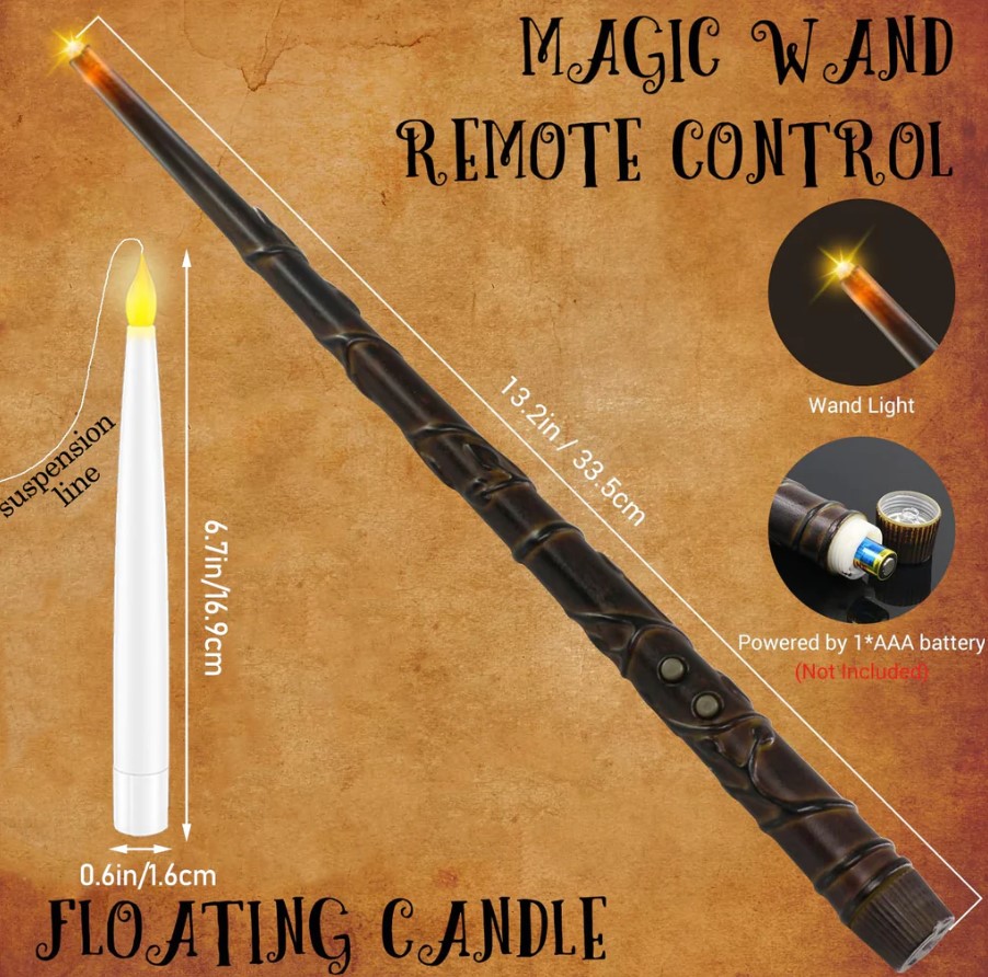 Néanmoins, vous pourrez vous croire dans la grande salle de Poudlard. D’autant plus que ces petites bougies se commandent grâce à une baguette magique (à piles). Il vous suffit d’épingler/clouer le petit fil de chaque bougies au plafond et voilà !