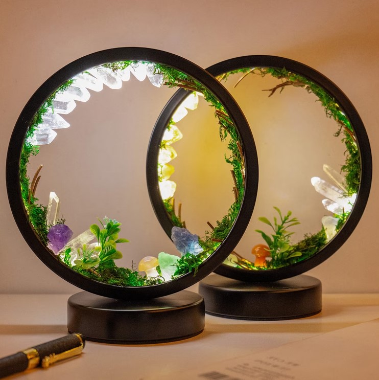 Pour une atmosphère un peu mystique, je vous propose cette jolie lampe ornée de cristaux. Elle fait 22 cm de haut et est alimentée par USB.