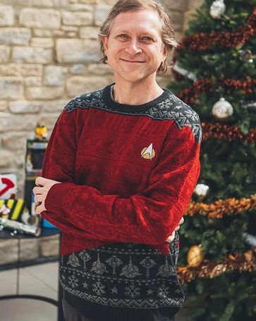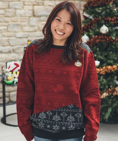 D’autant plus que les motifs ne sont pas imprimés mais tricotés. Avouez qu’il rend bien quand même. Il a un petit côté geek festif que seuls ceux qui connaissent Star Trek reconnaitront.