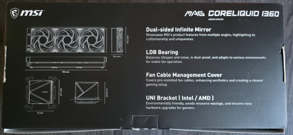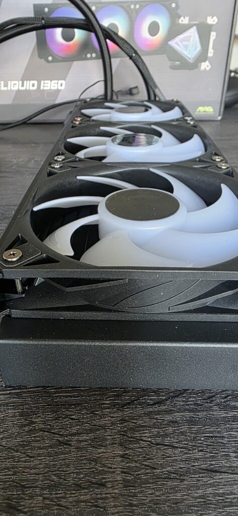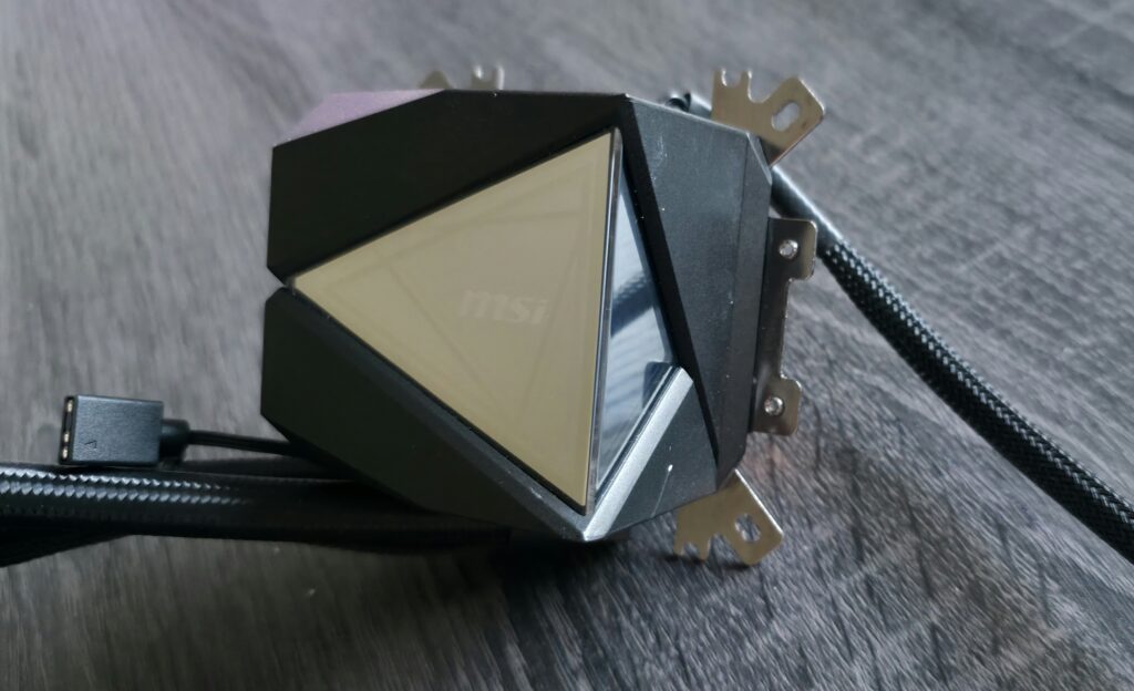 À l’arrière, on retrouve les points forts mis en avant par MSI : une pompe performante, un cache-câble intégré pour un montage propre ainsi que des ventilateurs déjà préinstallés, un vrai plus pour gagner du temps lors de l’installation.