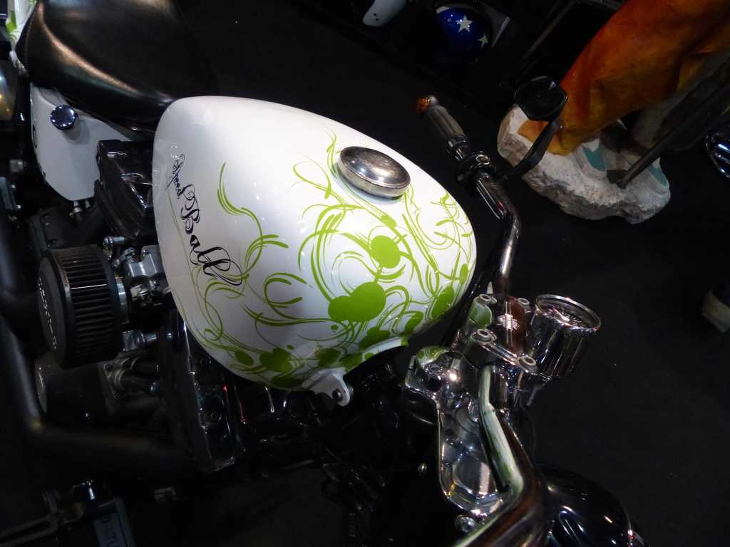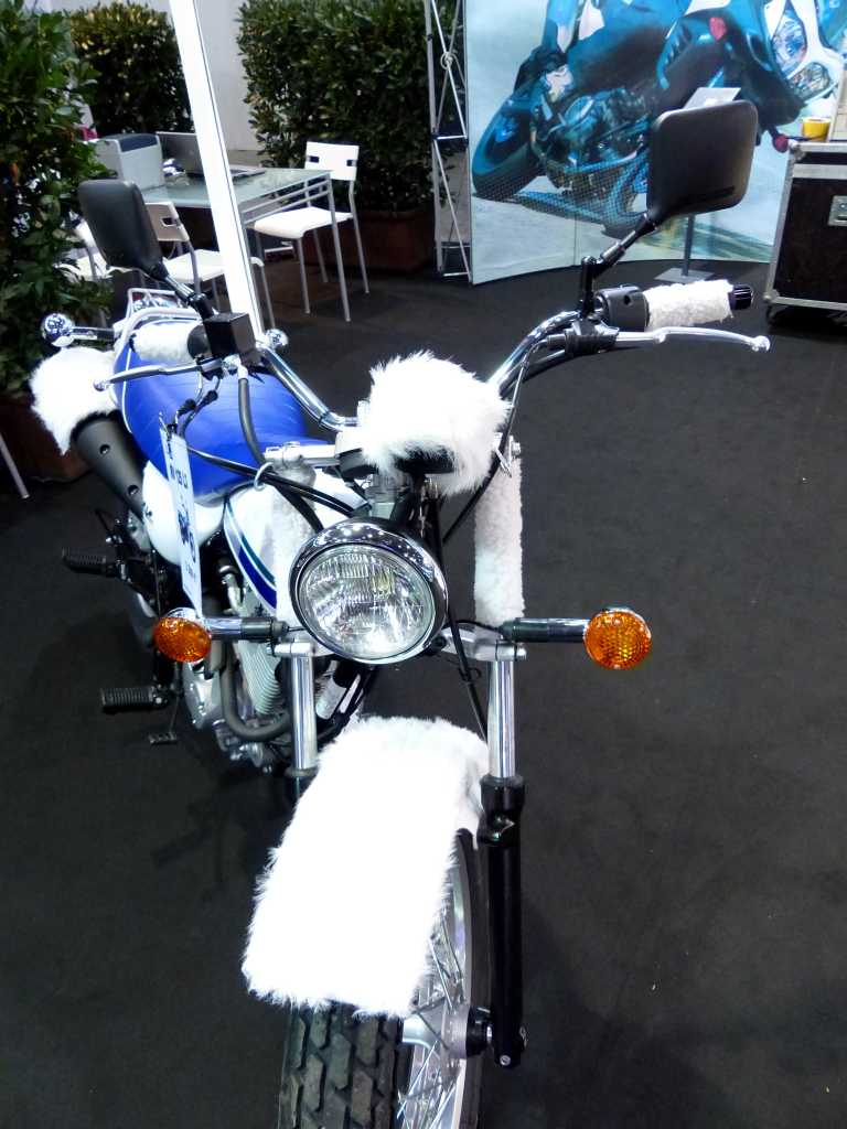 Il y a même un concessionnaire qui nous a montré sa customisation avec une moto recouverte de moumoute blanche !
