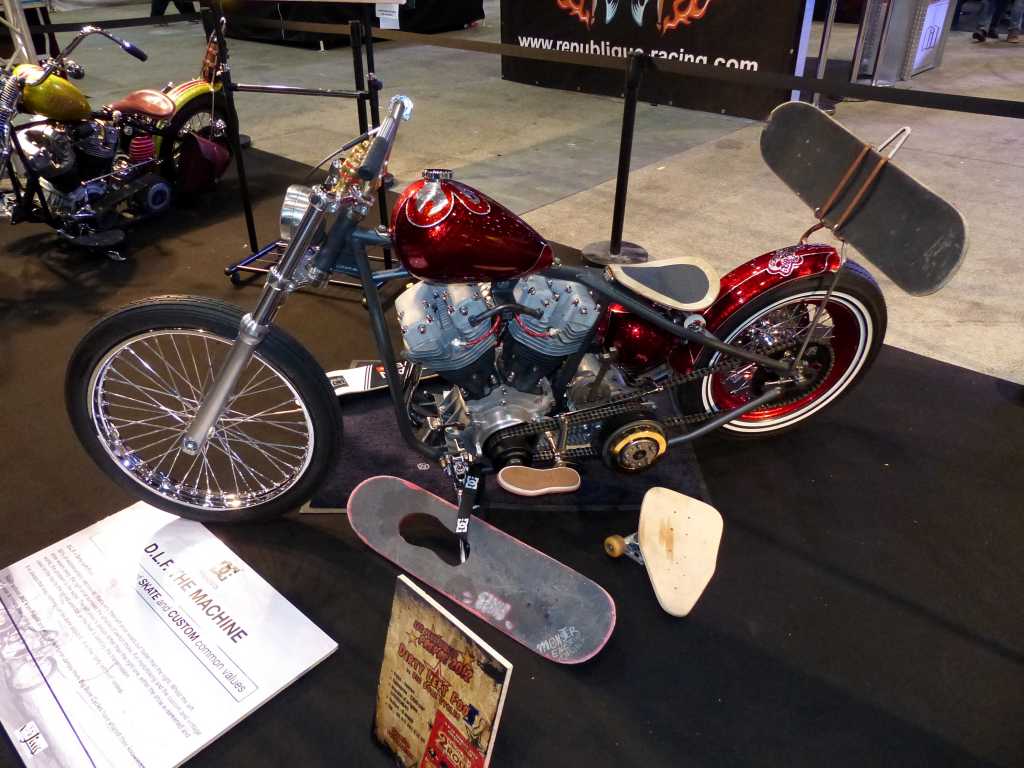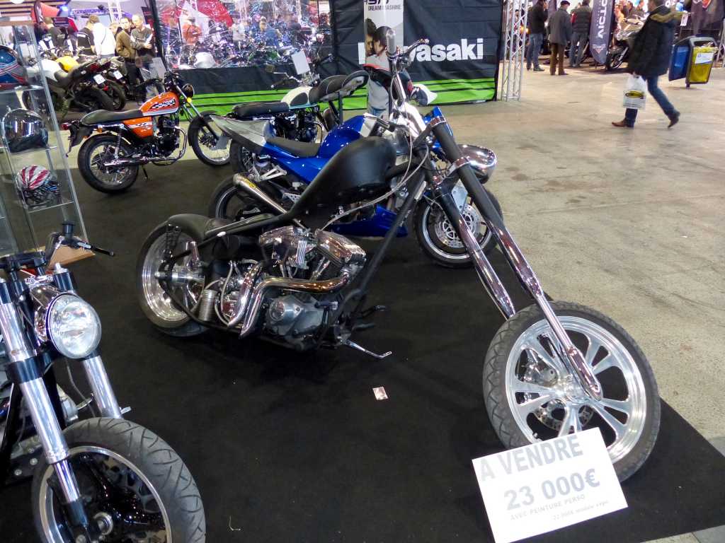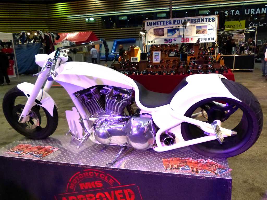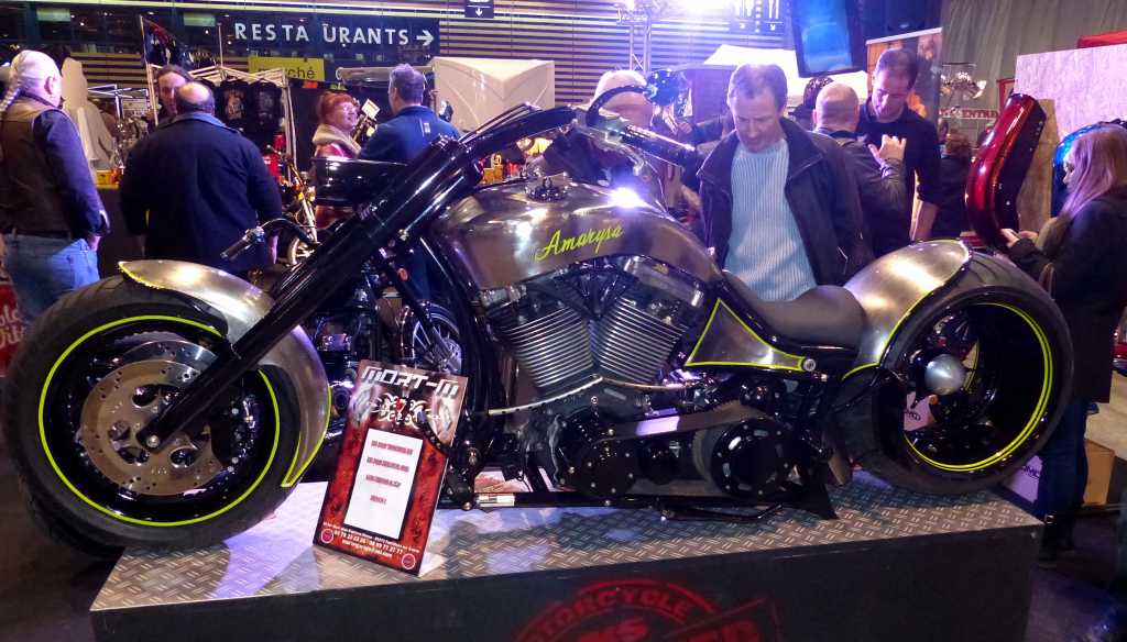 Cette année, ce n’était pas les stands des concessionnaires qui étaient à l’honneur. Oh, ne vous inquiétez pas, c’était bien la 1ère chose sur laquelle on tombait en entrant dans le salon. Mais l’accent était mis sur les choppers et autres motos customisées. Les motos qui ont de la gueule, qui attirent le regard, même si on n’est pas motard. Les meilleurs préparateurs étaient présents : Abnormal Cycle pour l’Italie, HD Thunderbike pour l’Allemagne, ou encore Auch VTM pour la France. Ils nous ont tous sorti leurs plus belles préparations et il y avait vraiment de belles choses. Ca donne envie de travailler sur sa moto. ^_^