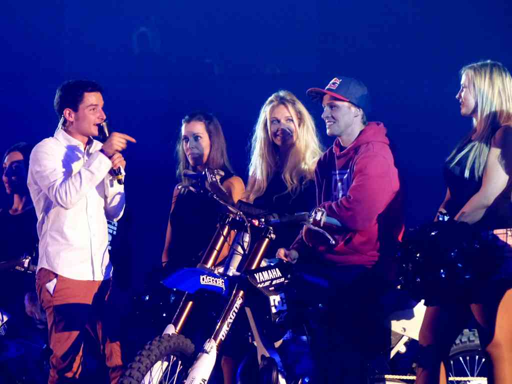Le programme de la soirée était simple : 2 manches pour les SX2 (les jeunes) et deux ½ finales et la finale pour la catégorie des SX1 (les moins jeunes). Le tout agrémenté des shows des 3 meilleurs freestylers du moment : les frères Pagès et l’australien Clinton Moore.
