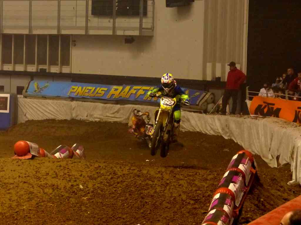 Les courses se sont enchaînées et le rythme était d’enfer. Le présentateur et le public aussi d’ailleurs. Thomas Do a survolé la catégorie SX2 (il a remporté les 4 manches le bougre !), talonné de près par Josse Sallefranque. Pour les SX1, c’est Fabien Izoird qui a remporté 2 finales, suivi de l’italien Angelo Pellegrinni et de Cédric Soubeyras. Leur finale était sans conteste la plus intense. L’italien a été très offensif et c’est surtout lui que je retiens de cette course. Mais je n’irai pas plus loin dans les détails puisque je ne suis pas une spécialiste du genre. GG pourrait le faire, mais il s’emballe à chaque fois et je ne le suis plus. ^_^