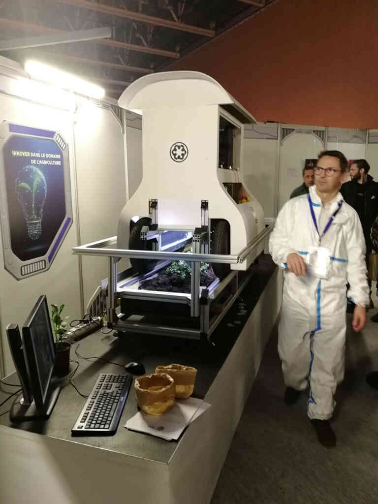 Mais passons sur mes déboires d’ordre technique et revenons au festival Yggdrasil. Comme d’habitude, l’ambiance est toujours au top ! On retrouve les sections habituelles (Steampunk, Jedi, sorcellerie…) dont certaines avec des modifications. Et on a eu droit à des nouveautés, il y avait toute une section scientifique. Et une grande en plus ! Il y avait une grosse partie consacrée à la fusée Ariane et le voyage dans l’espace. Mais il y avait d’autres choses particulièrement intéressantes comme l’impression 3D d’organes avec 3dfab, la dégradation de PET par une enzyme avec Carbios, la surveillance de signes vitaux par un petit dispositif qui peut se fixer sur une casquette par exemple avec Manitty , un système permettant de détecter des nuisibles sur une plantation, des lunettes 3D… Je n’ai pas tout retenu. Il y en avait trop. Mais c’était particulièrement intéressant. Le « problème » est qu’il y en avait beaucoup et que certains stands donnaient des explications et répondaient à nos questions. Ce qui fait que parcourir cette partie prenait énormément de temps.