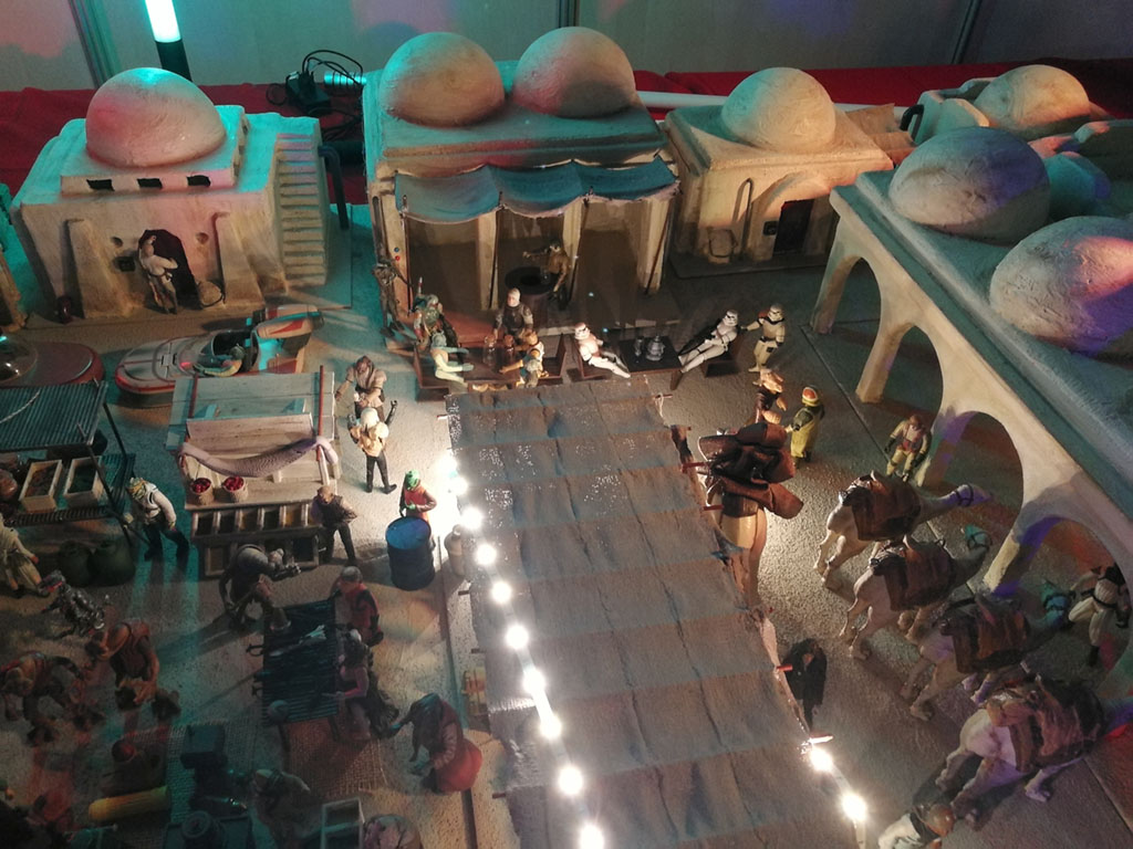 La section Star Wars était plus importante que d’habitude. D’ordinaire, il y a seulement les démonstrations et un stand pour les équipes qui font les démonstrations. Mais là, ils avaient un espace qui leur était consacré. Et on y trouvait de nombreux et excellents cosplays, mais aussi de très belles maquettes du monde Star Wars. Et des ventes de sabre. Et bien sûr des démonstration de combat.