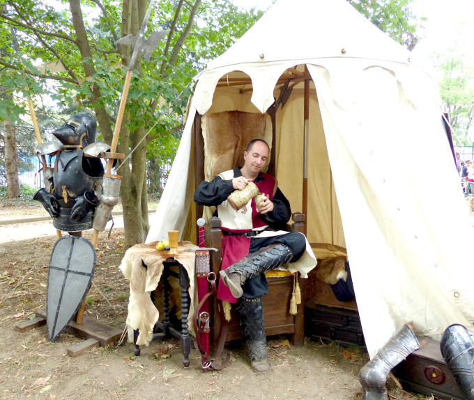 Comme la fois précédente, les thèmes présents étaient nombreux : la magie, le steampunk, les vikings… Et de nombreux artisans et artistes étaient aussi là pour vendre bien sûr, mais pour faire découvrir leurs créations aussi. On retrouvait le boulanger qui travaille de manière traditionnelle, les artisans du cuir, des potiers, des couteliers, des instruments de musique, la dégustation d’insectes (morts, je vous rassure)…
