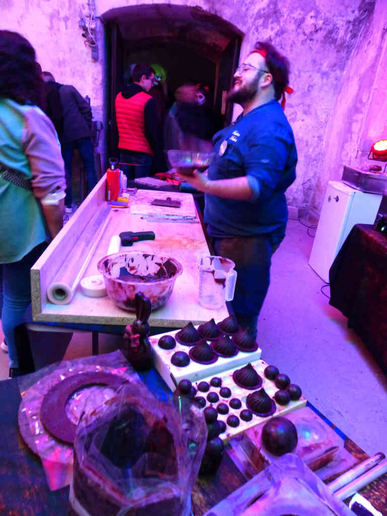 Les maris des trois bonnes fées qui, en l’absence de leur épouse, ont emprunté leurs robes, ont animé un atelier de biscuits pour décorer un gros gâteau. Dans la même salle, on pouvait voir un chocolatier à l’œuvre.