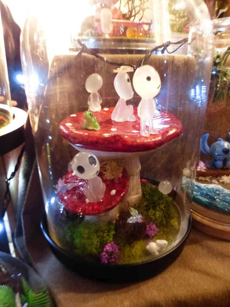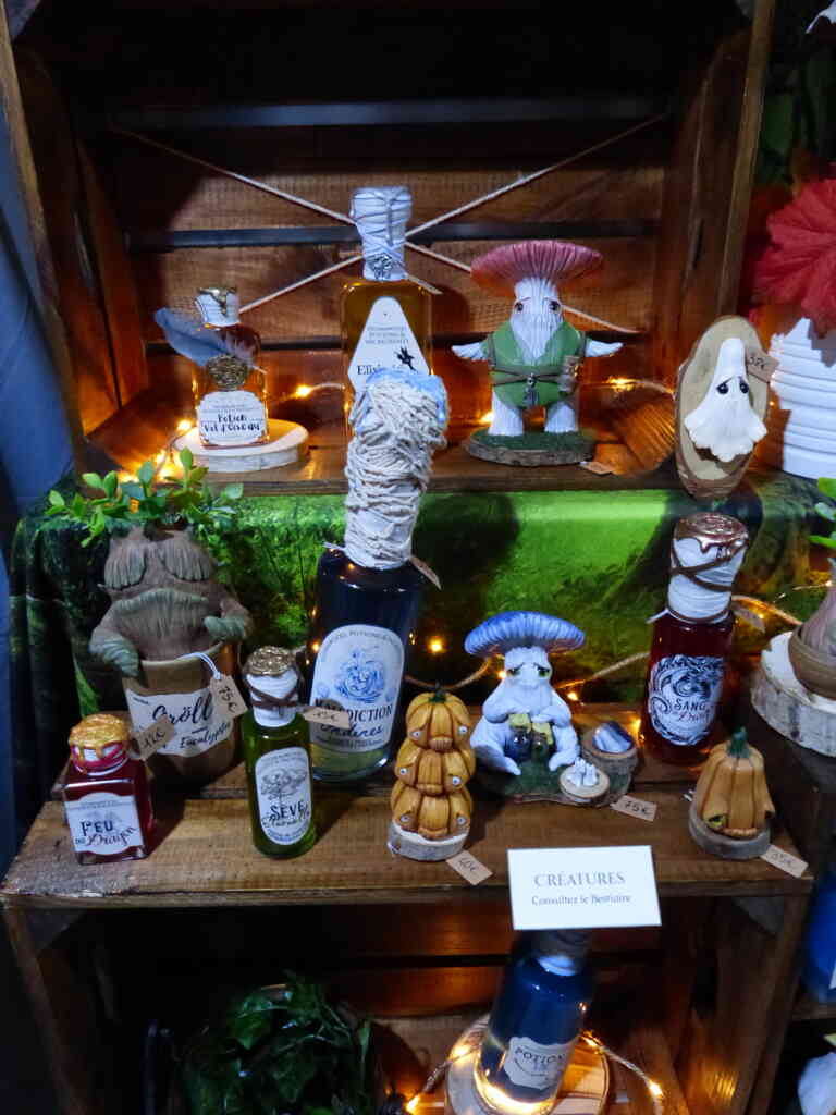 Plein de petites figurines étaient à vendre et j’avoue qu’il était difficile de ne pas craquer. Surtout maintenant que je regarde les photos, j’ai pas mal de regrets… Néanmoins, j’ai craqué sur une seconde mandragore dans la boutique La mandragore-Les Mandy’s. Un peu plus grosse que la première, mais elle était trop mignonne à côté de son champignon. J’ai eu un mal de chien à me décider d’ailleurs…