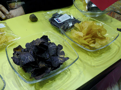 Après, on pouvait trouver tout ce qu’il y a de plus classique : des machins pour couper, laver, cuisiner, chauffer, griller… De la plus petite taille à la plus grosse ! Mais on pouvait surtout trouver des trucs à goûter, grignoter, découvrir. Nous avons notamment découvert les chips bleues issues de la pomme de terre Vittelote. Très bonnes ces chips, j’espère qu’on les retrouvera un jour dans les rayons des super-marchés classiques… Mais parait qu’au Japon, ils ont déjà des chips colorées, des chips à la patate douce violette notamment… On est à la bourre l’air de rien.