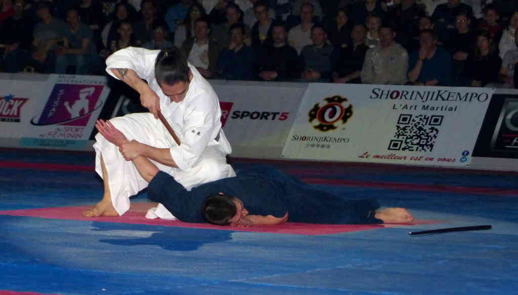 Comme chaque année, Maître Aosaka et son équipe nous ont fait une belle démonstration du Shorinji Kempo. Et ce qui a le plus impressionné le public, ce sont les face à face où les coups sont portés pour de vrai, ceux où l’opposant porte un casque à bulle pour se protéger le visage, ce qui permet aussi d’entendre le bruit des coups. Et comme chaque année Maître Aosaka et son équipe ont rencontré le succès.
