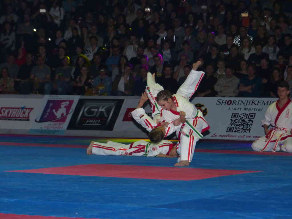 Le Kyokushinkai est présent comme à chaque fois à ce festival. Les combats sont toujours impressionnants, surtout quand on entend le bruit des coups portés. Ils ont aussi fait de belles casses. Par contre, les passages en groupe étaient un peu simples. C’est toujours impressionnant de les entendre crier tous ensemble. Mais ils ont déjà fait mieux lors des précédentes éditions.