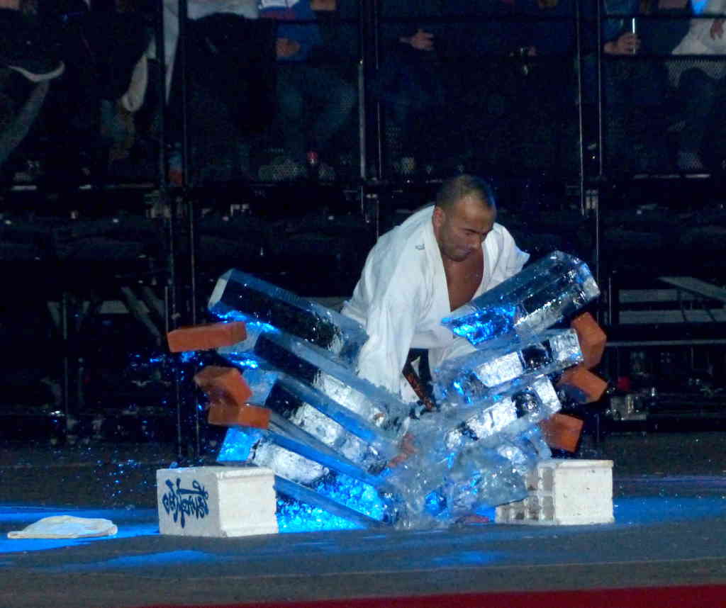 Nous avons assisté ici à du bon et du moins bon. Les moines de Shaolin présents comme presque chaque année, se sont démarqués des années précédentes par des casses impressionnantes, notamment avec celui qui cassait des pavés avec ses doigts comme nous on coupe du saucisson avec un couteau. Sauf que ce n’était pas un saucisson, et qu’il n’avait pas de couteau.