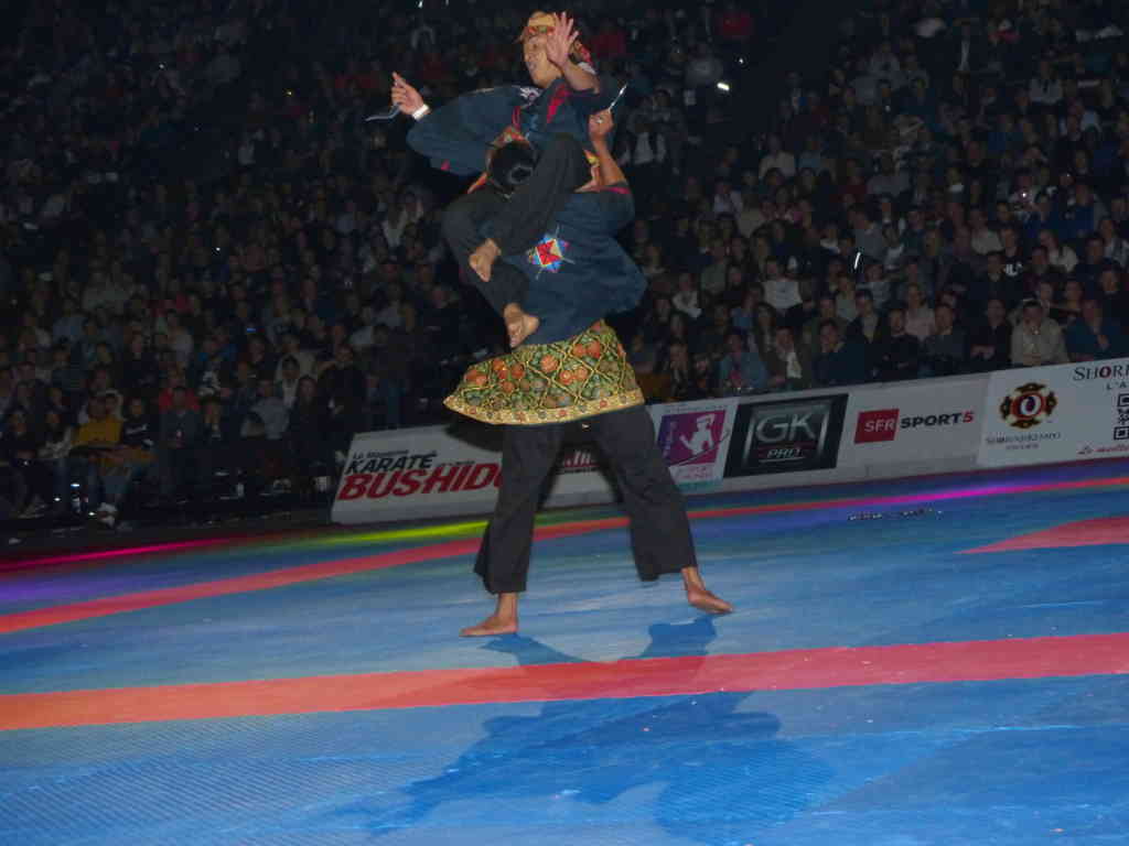Eux aussi présents chaque année, avec un numéro renouvelé à chaque fois, le Kempo Bulgare (ou Bulkempo) séduit toujours. Son fondateur, Velin Hadjolov, s’est même laissé aller à un peu d’humour, ce que le public a forcément apprécié ! Jusqu’ici la danseuse n’avait qu’un rôle décoratif, là, elle avait une place plus importante.