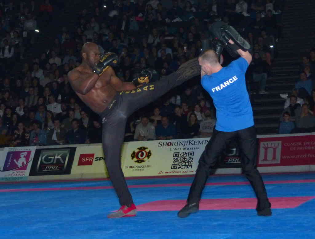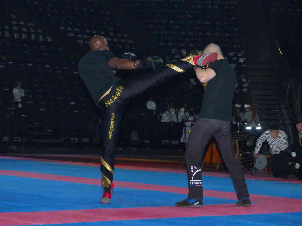 Les représentants de la boxe française étaient d’une humeur débordante. C’était leur première apparition au Festival, et ils étaient accompagnés de la Savate défense et de la canne française. Il n’y avait que des boxeurs titrés nationaux et internationaux : Enoch Effah, Rim Ridane… Et pour la partie défense : José, Ludovic et Christian. Tous des athlètes accomplis qui représentent notre disciplines made in France.