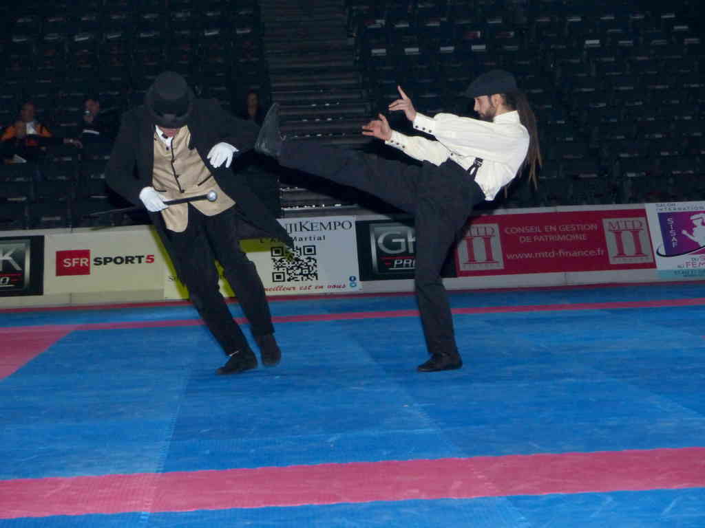 La savate défense nous a fait une jolie démonstration costumée. Certaines personnes sont faites pour jouer la comédie, et un des participants était à fond dans son rôle de lascar. C’était très amusant !