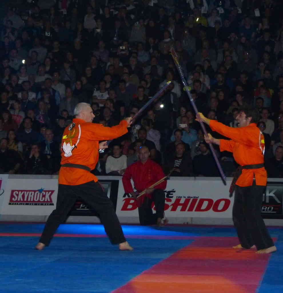 La surprise est venue de Maître Yuanlimin qui nous a fait une superbe démonstration de Kung-Fu Wudan. Il a même laissé Bourbon Kid sans voix ! Un superbe tao, plein de grâce et d’énergie. Il était seul sur le tatami et il n’avait besoin de personne d’autre.