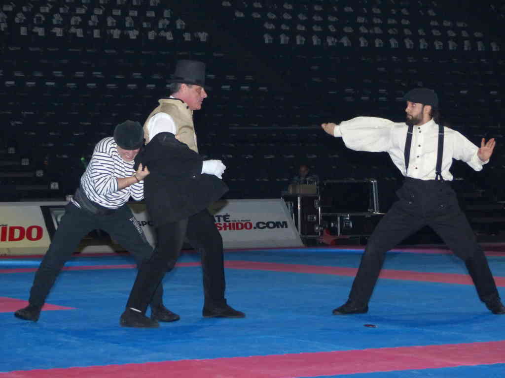 La savate défense nous a fait une jolie démonstration costumée. Certaines personnes sont faites pour jouer la comédie, et un des participants était à fond dans son rôle de lascar. C’était très amusant !