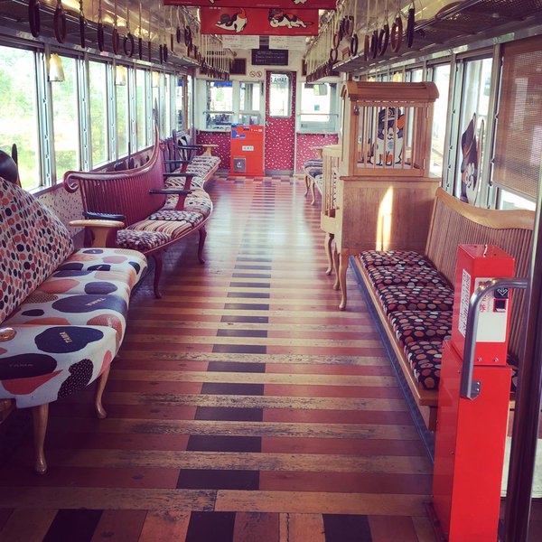 Passons maintenant aux chats… Il fallait bien sûr qu’ils aient un train consacré aux chats ! Vous avez peut-être entendu parler du chat qui joue au chef de gare ? Tama de son petit nom ? Non ? Et bien tant pis pour vous ! Sachez juste que ce chat est une célébrité locale et qu’il est celui qui a inspiré ce train, le Tama-densha.