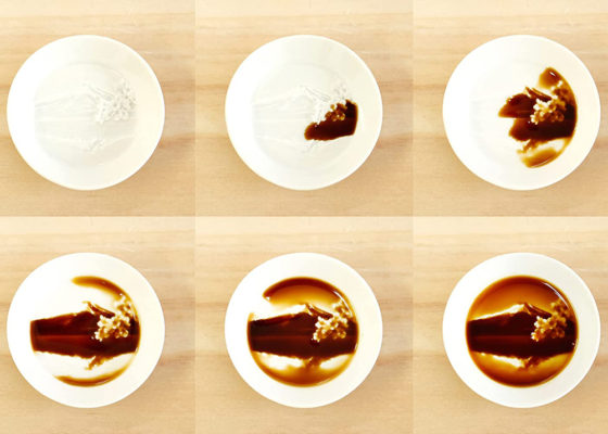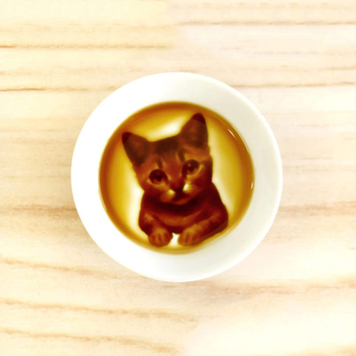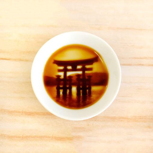 Le fond du petit bol est décoré avec une image en relief du Mont Fuji ou d’un Torii et l’image se révèle en mettant de la sauce dedans.