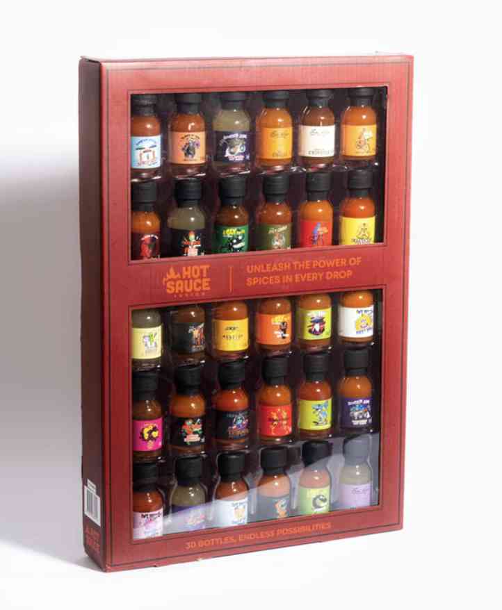 Si vous avez envie de sauces piquantes mais sans forcément vouloir souffrir, j’ai une excellente alternative pour vous : un kit qui propose 30 sauces venues des quatre coins du monde ! Avec une intensité allant de 1 300 à 10 000 Scoville, il conviendra parfaitement aux palais plus sensibles, tout en ajoutant juste ce qu’il faut de défi.