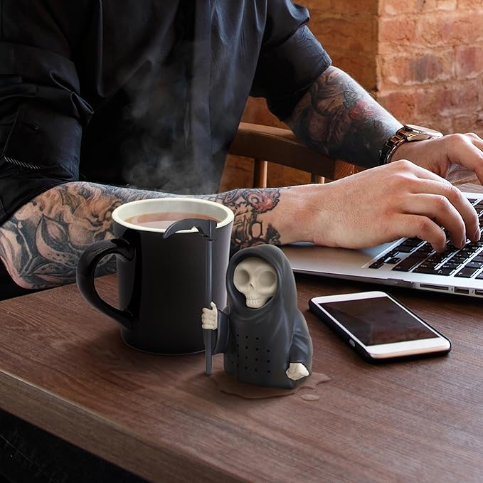 L’infuseur à thé « chat » est disponible ici pour 20$ et celui du grim reaper ici pour 20$.